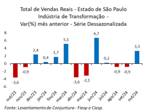 Os resultados da pesquisa Sondagem Industrial da Confederação Nacional das Indústrias (CNI) para outubro de 2024 apontam avanços da produção tanto da indústria geral (transformação