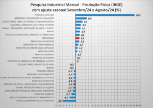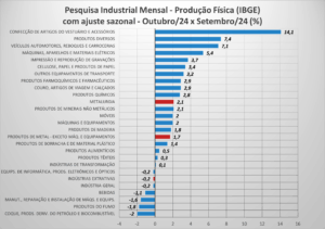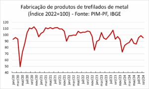 No mês de setembro de 2024, as duas categorias em que se incluem os setores processadores de aço apresentaram comportamento divergente, de acordo com a